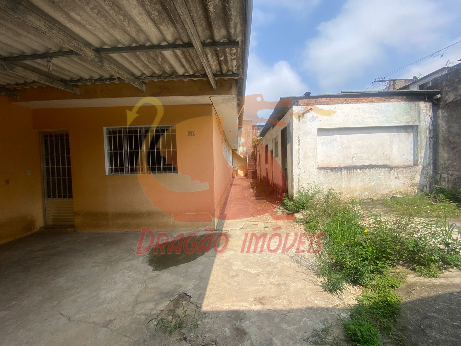 CASA TÉRREA com 2 dormitórios, sala, cozinha, banheiro, quintal, terraço amplo, garagem e uma construção para demolição.